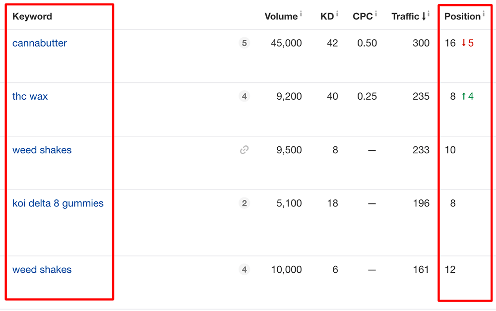 You can identify such keyword opportunities using Ahrefs’ Organic keyword tool:
