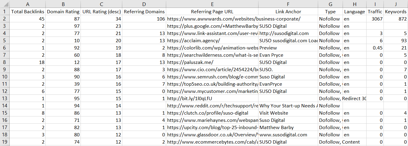 Your spreadsheet should look like the above, and is now ready to start analysing the links.