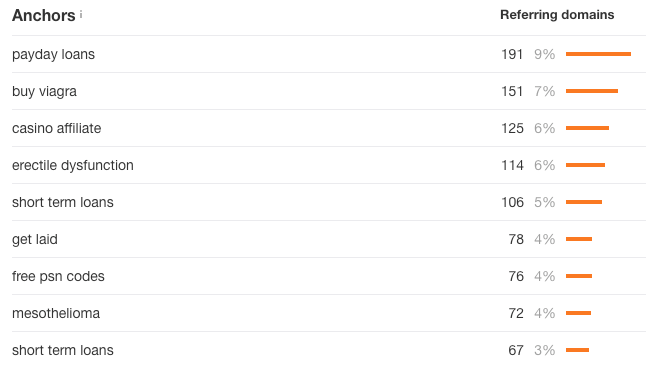 - Adult anchors i.e. “sex”, “viagra” etc.