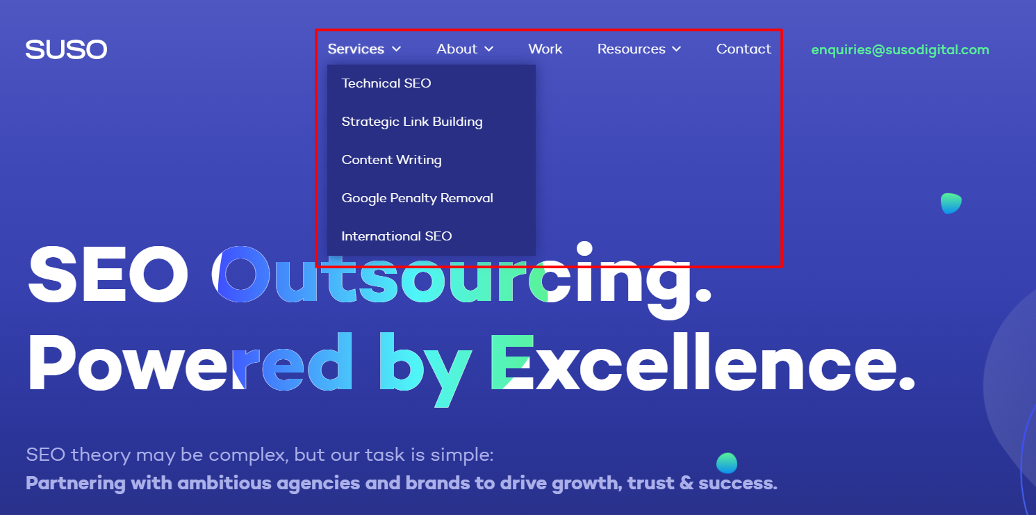 This is because your website’s main menu serves as a map for both users and search engines for the most important pages. It provides contextual cues to users who are looking for specific pages as well as gives search engine crawlers a clearer understanding of your site’s hierarchy (i.e. how your web pages are related to each other).